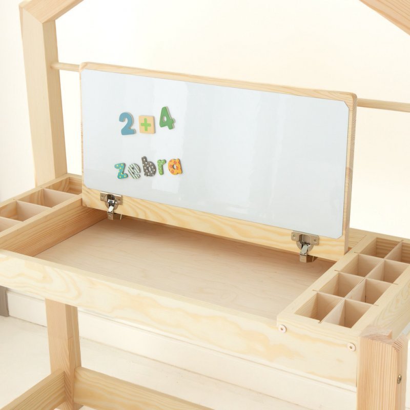 In der Montessori-Pädagogik gehen Spielen und Lernen Hand in Hand – und genau das verkörpern Möbel, die von dieser Methode inspiriert sind. Ein gutes Beispiel ist ein Hausbett. Nachts bietet es dem Kind einen sicheren Schlafplatz – es ist niedrig, stabil und oft mit einem Rausfallschutz ausgestattet. Tagsüber, nach dem Entfernen der Begrenzung, verwandelt sich das Bett in einen kreativen Spielraum. Es kann zur Höhle, zum Kaufladen, zur Leseecke oder zur kleinen Theaterbühne werden.