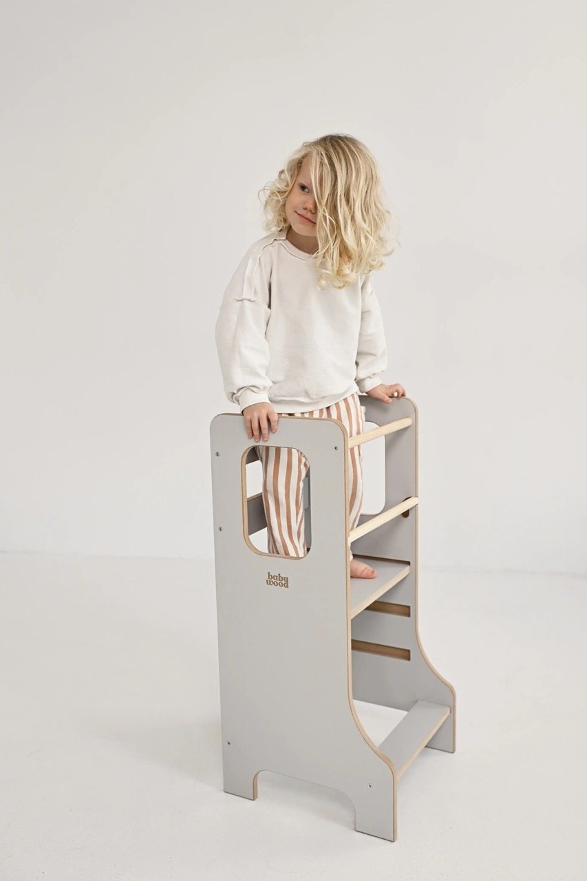 Der Küchenhelfer im Montessori-Stil ist ein Möbelstück, das für gemeinsame Momente geschaffen wurde. Er ermöglicht es dem Kind, sicher an alltäglichen Kochaktivitäten teilzunehmen. Die höhenverstellbare Plattform lässt sich an die Körpergröße des Kindes anpassen. Erhältlich in vielen Farbvarianten – wählen Sie denjenigen, der perfekt zu Ihrem Interieur passt.